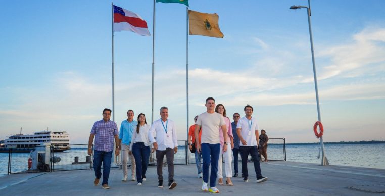 O prefeito de Manaus, David Almeida, esteve na tarde desta segunda-feira (1º/9) no píer turístico Manaus 355, localizado no mirante Lúcia Almeida, no centro histórico, para divulgar novas informações sobre a 1ª edição da corrida “#SouManaus” e sobre a distribuição de pulseiras do festival #SouManaus Passo a Paço 2025.