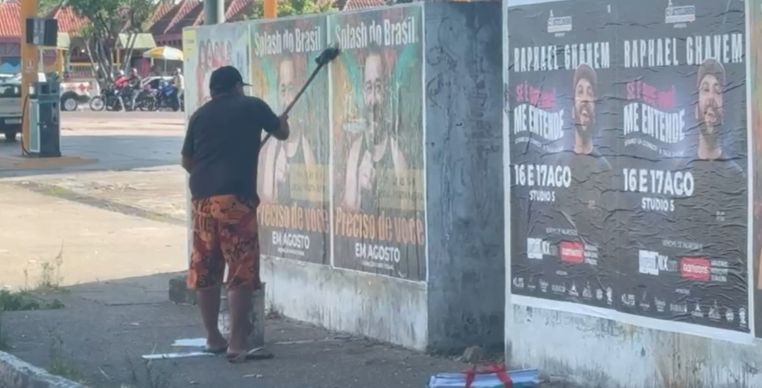 Na última sexta-feira (8), uma equipe do Implurb flagrou, na avenida Darcy Vargas, um homem com material de colagem e dezenas de cartazes prontos para serem aplicados em muros de áreas públicas e particulares, sem autorização. O material foi apreendido e o responsável, notificado, assim como a empresa contratante.