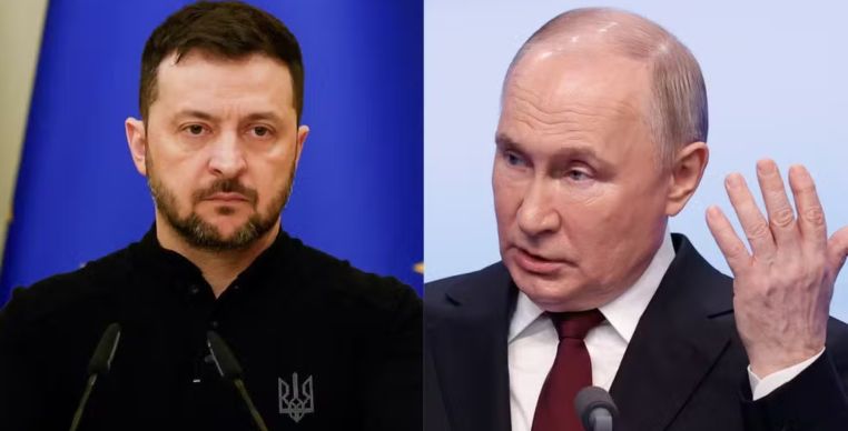 Presidente da Ucrânia, Volodymyr Zelensky (à esquerda), e o presidente da Rússia, Vladimir Putin.