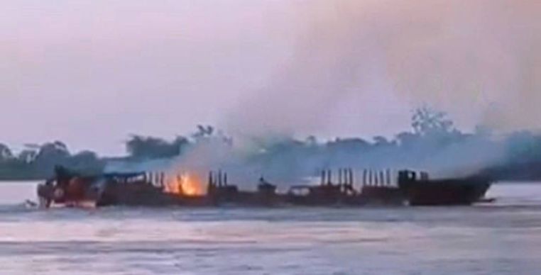 O barco, chamado HB Kongolo, pegou fogo perto da cidade de Mbandaka, depois de deixar o porto de Matankumu em direção ao território de Bolomba.