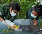 Filhote de peixe-boi é resgatado debilitado em Alvarães, interior do Amazonas