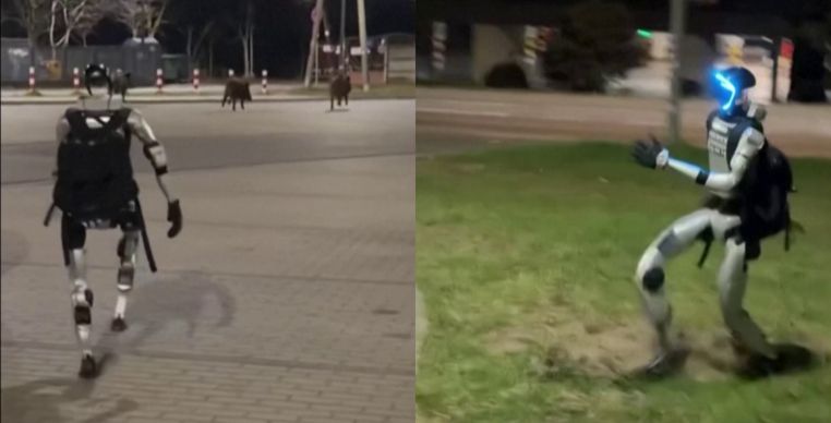 Robô humanoide viraliza ao espantar javalis correndo em Varsóvia
